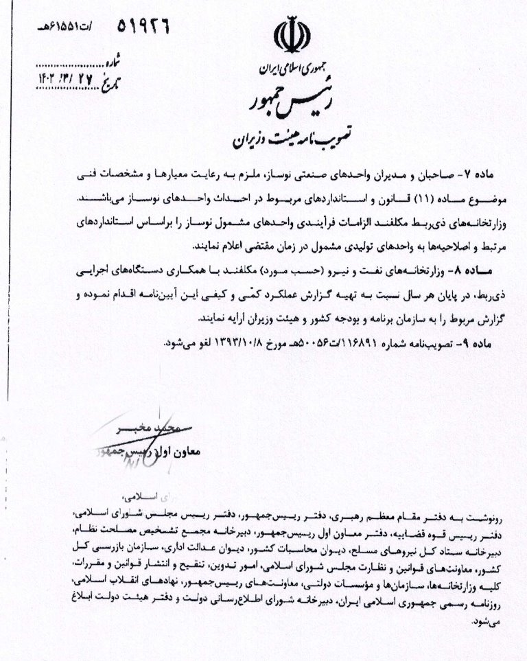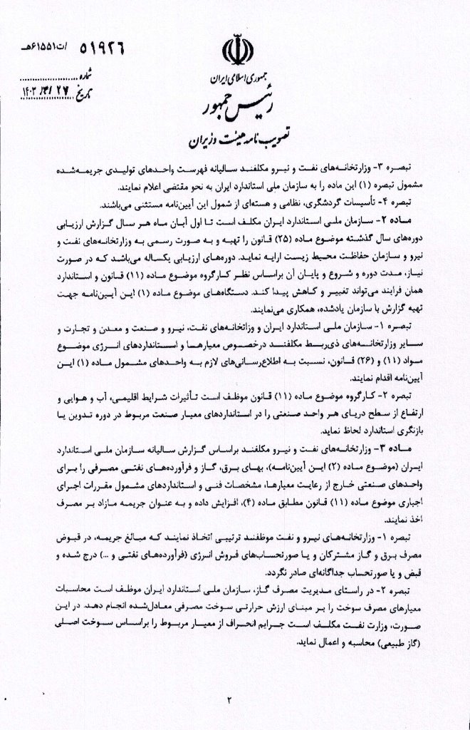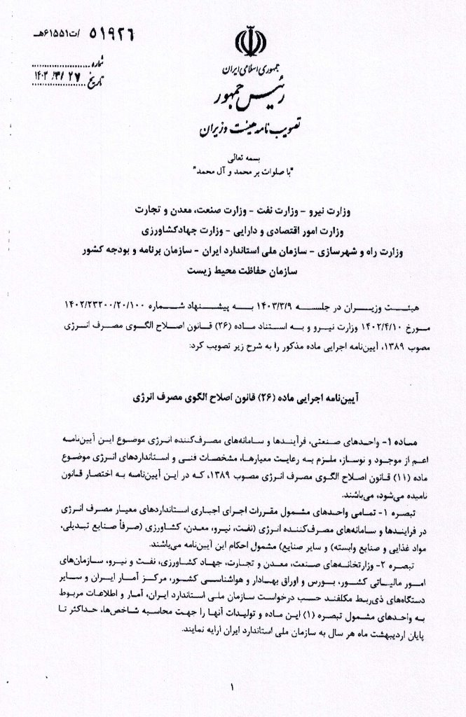 بخشنامه اتاق اصناف در خصوص آئین نامه اجرائی ماده ۲۶ قانون اصلاح الگوی مصرف انرژی و میزان جرائم متخلفین