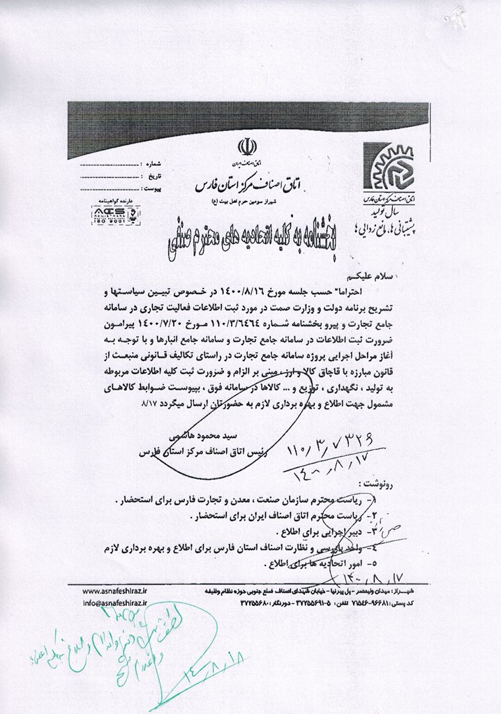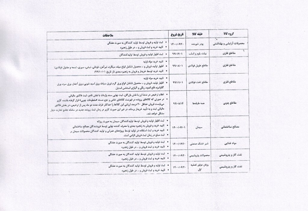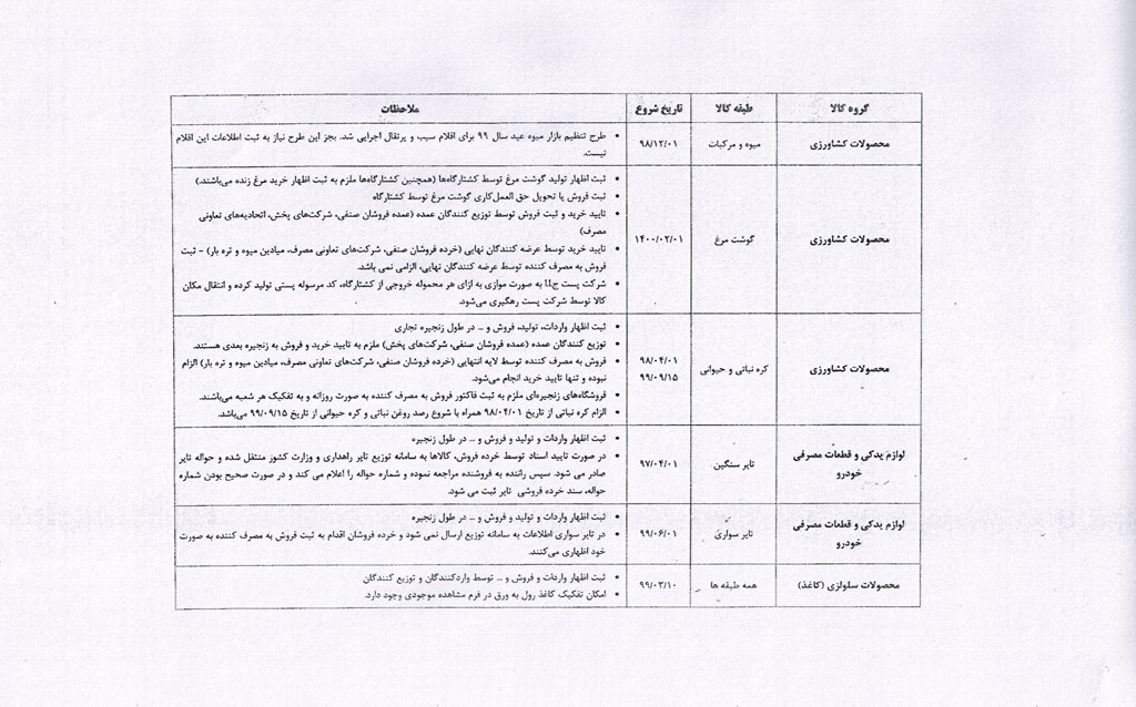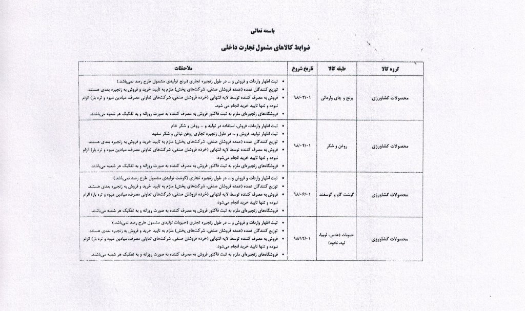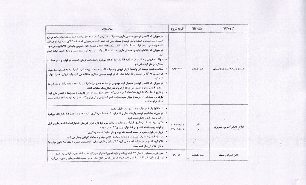 ضرورت ثبت اطلاعات در سامانه جامع تجارت و سامانه جامع انبارها (لیست کالاهای مشمول جهت اطلاع و بهره برداری)