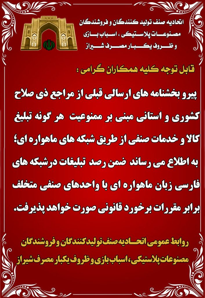 اتحادیه صنف تولید کنندگان و فروشندگان مصنوعات پلاستیکی و اسباب بازی شیراز